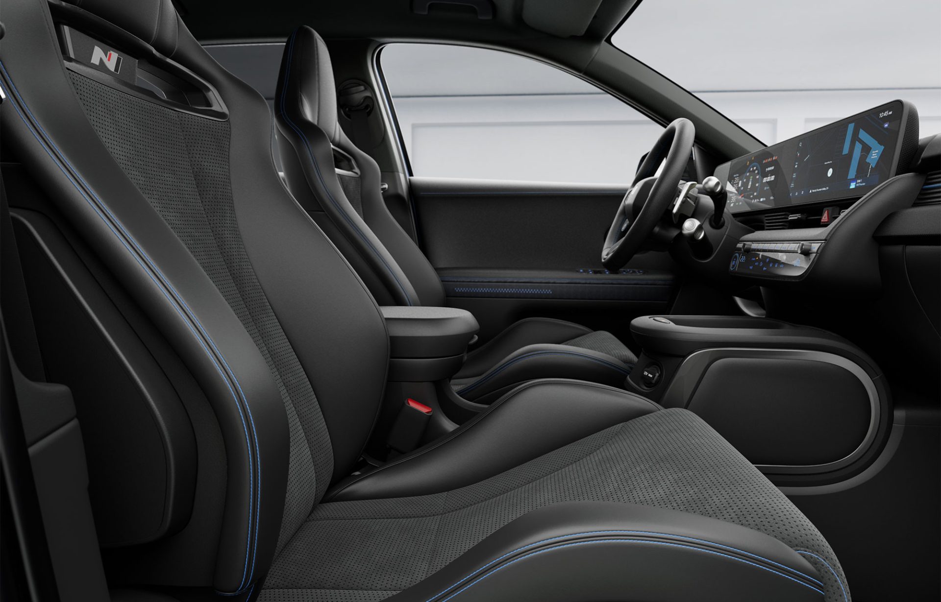 Le volant spécifique N, gainé de cuir et parfaitement calibré, intègre des boutons dédiés aux modes de performance, permettant d’ajuster instantanément les paramètres du véhicule : la réponse de l’accélérateur, la direction, la suspension, le freinage et la sonorité artificielle. Cette configuration met le conducteur au centre de l’expérience et transforme chaque trajet en une conduite sur mesure.